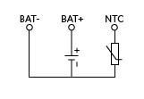 电池通常带有负温度系数(NTC)热敏电阻,该电阻适用于防止电池在过高或过低的温度下充电。因而,电池具有三个连接:正极端子(BAT+),负极端子(BAT-)和NTC热敏电阻的连接(请参看图1)。