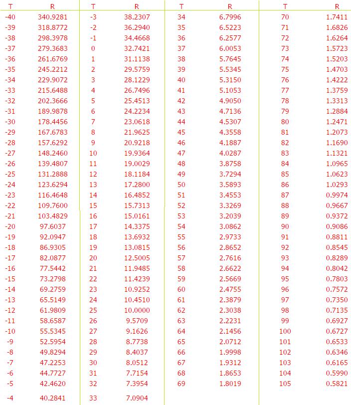 耐温变换表