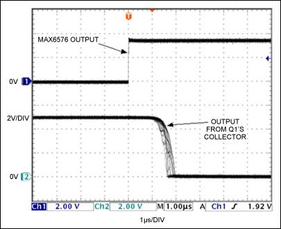 因而,Q2中的导通导致Q1中的导通,其将传感器方波输出复制到Q1的集电极电路。电路的上升/下降时刻,抖动和传达时刻一共约为2μs(图2和图3)。抖动引起的测量误差相当于最快转化常数(10μs/°K)时小于0.1°K;在较长的常数下,它可以忽略不计。相同,经过允许规模(4.5V至5.5V)改动电源电压引起的等效输出改变小于0.1°K。数字输出(Q1集电极)从0V摆动到+5V,可以吸收几个mA。