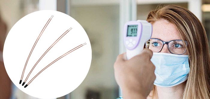 现在市面上在售的额温枪,一般都会调配深圳市威敏通敏感科技有限公司生产的微小型绝缘引线NTC热敏电阻,能更好地进行温度监测及温度保护。而大部分额温枪除了可以秒测体温的功能外,还具有年龄阶段选择功能、声响开关功能、夜光显示功能,可以使体温测验更准确,运用更加安静舒适,对病患的保护更到位。