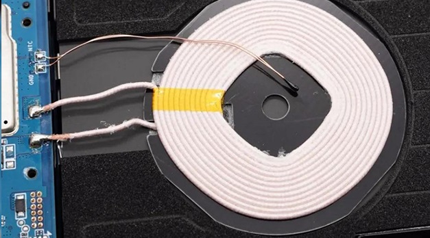 无线充电器一般来说包含外壳、无线充电线圈、PCB板、电芯、测温NTC热敏电阻。无线充电器中的电芯,贴有泡棉起保护效果,中心处放置无线充电线圈以及温控用的微小型绝缘引线NTC热敏电阻。无线充电路板则运用螺丝固定,电路上掩盖屏蔽罩。PCB板的正面,通过电感打胶处理,以往电量指示灯的方位焊接了充电触点,电量指示灯在电路板右侧;其反面的中心区域则设有屏蔽罩。通过对PCB板正面以及反面的电路观察可以发现,无线充电器选用一颗主控芯片来操控,通过同步升降压转化电压完成USB输入/输出以及无线充输出的设计架构。