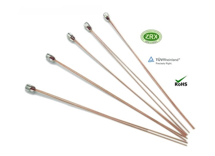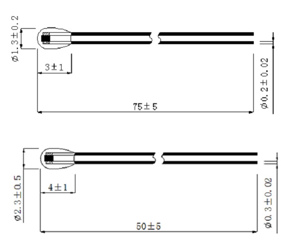 径向玻璃封装 NTC热敏电阻的引线是杜美丝非绝缘线。假如想要绝缘的话,也能够在杜美丝外加上聚四氟乙烯套管,但其缺陷是容易滑落。