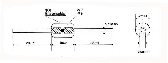 今日给大家介绍一款NTC热敏电阻——二极管玻封NTC热敏电阻,此款为轴向玻璃封装二极管型NTC热敏电阻带有轴向镀锡的(铜包镍铁)线。
