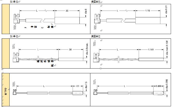 传感器类型 | 长度 | 连接器 | 颜色符号 | 代码编号 |