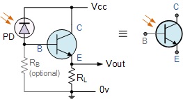 光电二极管的另一种光结构件是光电晶体管,它绝大多数都是一个带扩大的光电二极管。光电晶体管光传感器的集电极基极PN结反向偏置,将其暴露在辐射光源下。