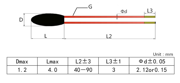 阻值(25℃) 10k±1% 头部直径(mm) 1.3毫米 R公差(%) ±1% 长度(mm) 50毫米 B值(25/50℃) 3435±1% 引线 漆包线 耗散(mW/℃) >0.7(静止空气中) 包装 塑料包装 时间常数T(秒) 3-5S 认证 ROHS、REACH