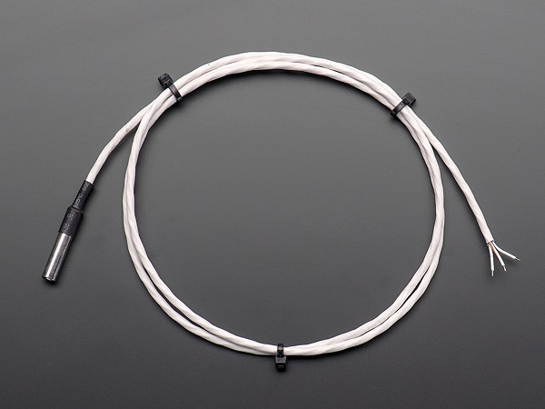 这是DS18B20传感器的预接线和防水版本,该传感器由PTFE电缆制成。对于需要在长距离或湿润的当地进行测量时,十分便利。