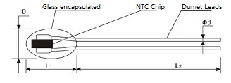 径向引线玻璃封装 NTC热敏电阻尺寸