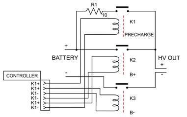 预充电:初度翻开系统时,K1和K3翻开,为负荷预充电,直到浪涌电流阑珊。R1标明预充电电路中热敏电阻的方位。